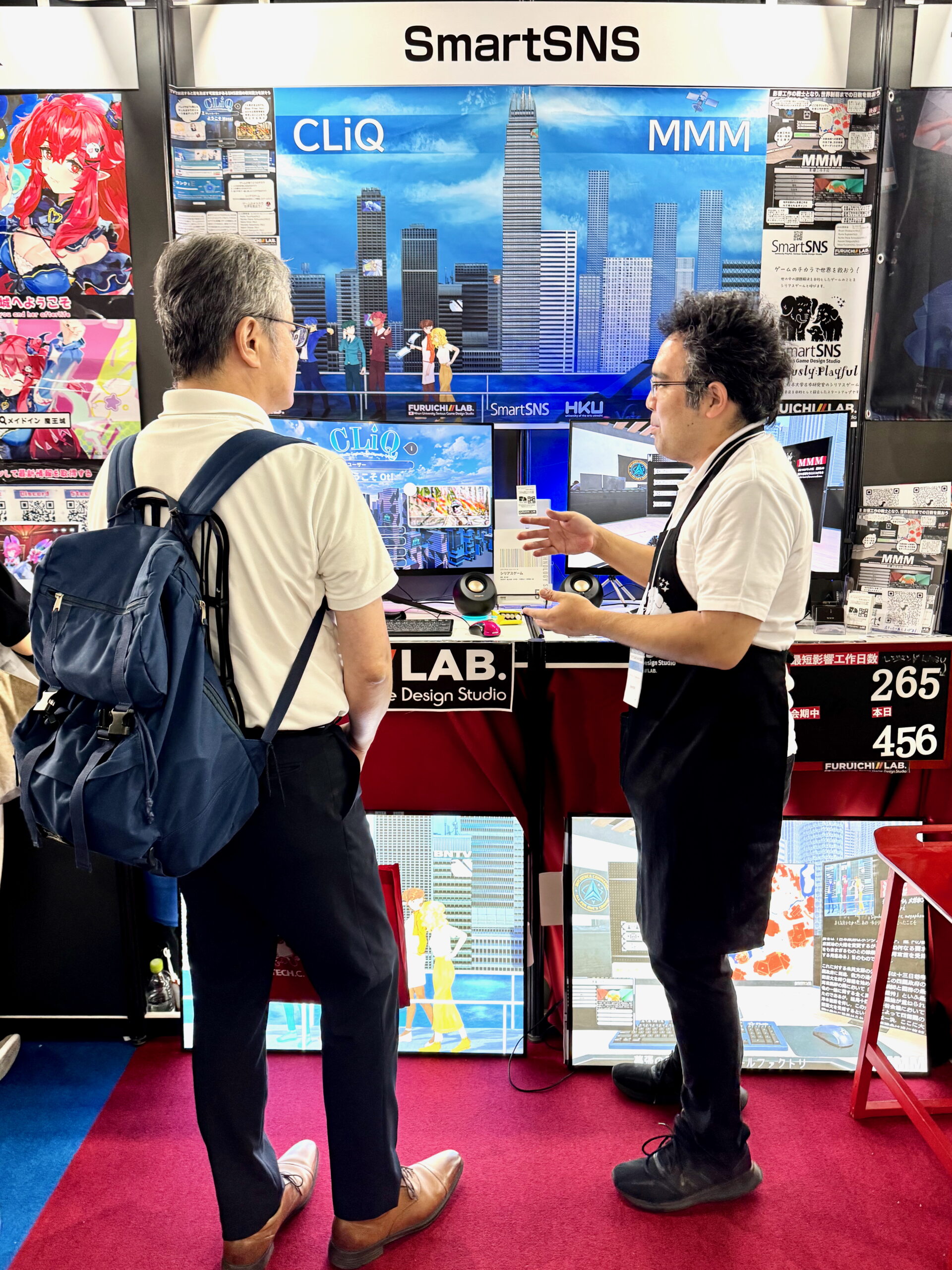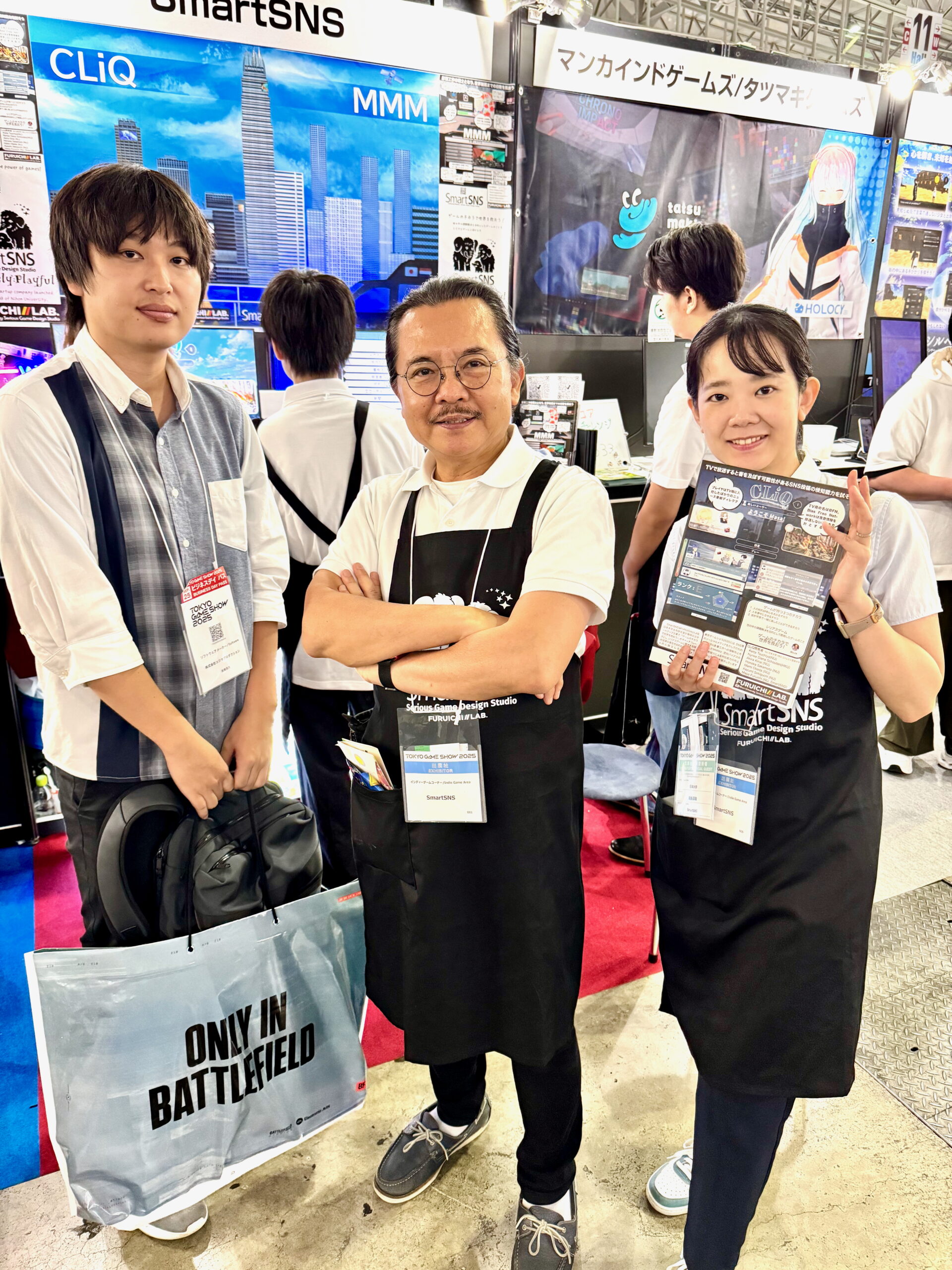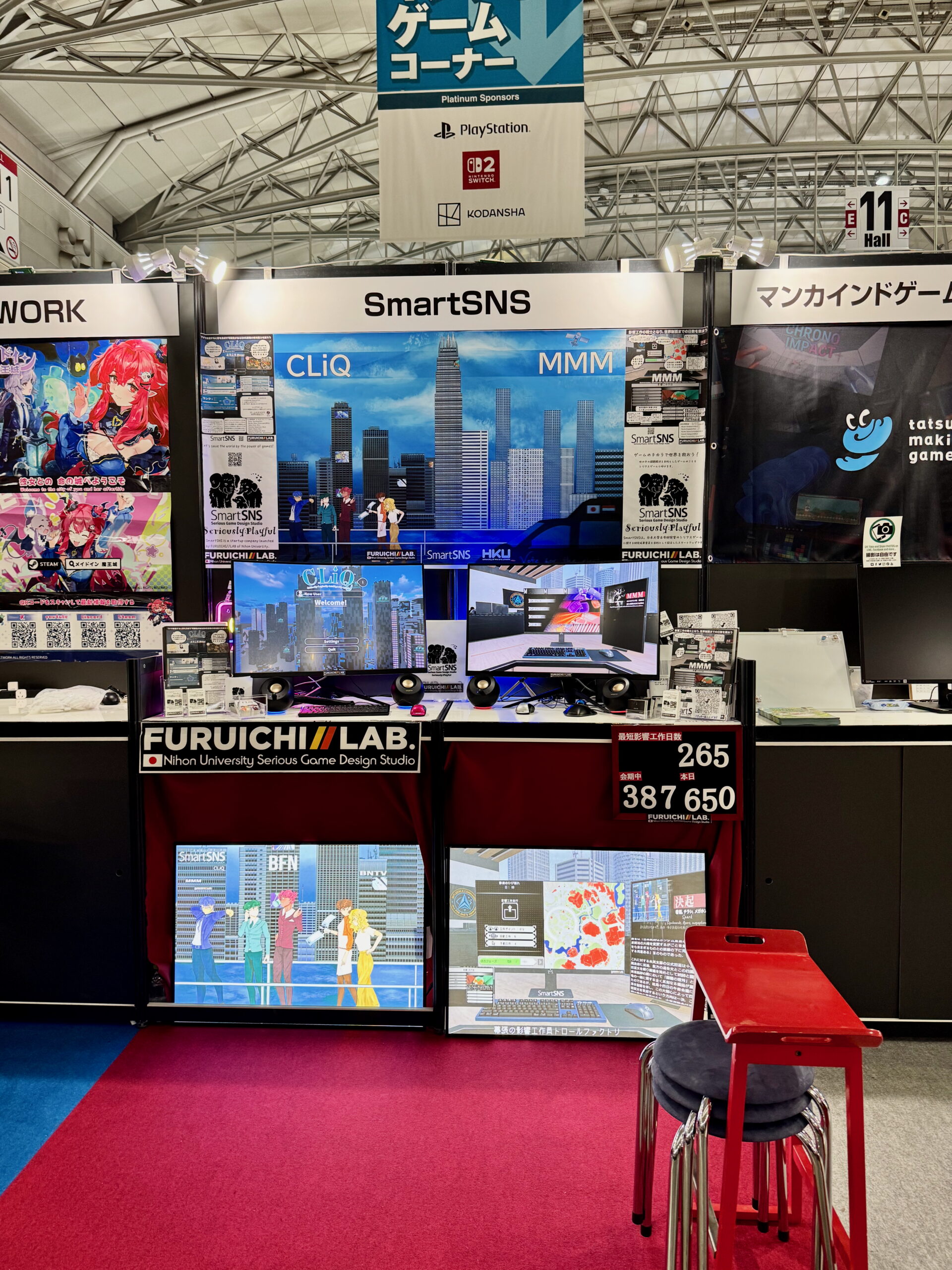 2025年9月25日(木)から28日(日)に幕張メッセで開催された東京ゲームショウ2025にSmartSNS(古市研究室が発祥のスタートアップ)から2本のシリアスゲーム(CLiQとMMM)を展示,開発したのは古市研究室所属の4年生と大学院の博士後期課程の学生である.